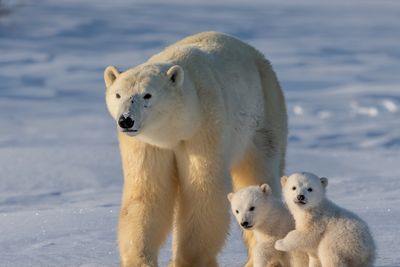 Polar bears live in very cold climates. The Arctic is often below freezing, with icy winds and snow all around. Polar bears have thick fur and a layer of fat (called blubber) to keep them warm in these freezing temperatures.